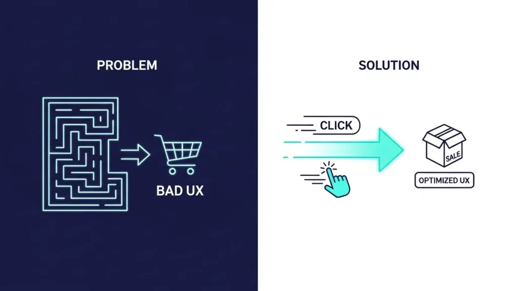 أول خطوة عملية في حل ضعف المبيعات في المتجر الإلكتروني تبدأ من تحسين تجربة المستخدم (UX). تخيل أنك تصب الماء في دلو مثقوب؛ مهما زدت كمية الماء (الزيارات)، لن يمتلئ الدلو (المبيعات). في Boostrify، نركز على: